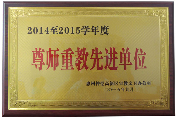 評(píng)選為2014至2015學(xué)年度“尊師重教先進(jìn)單位”